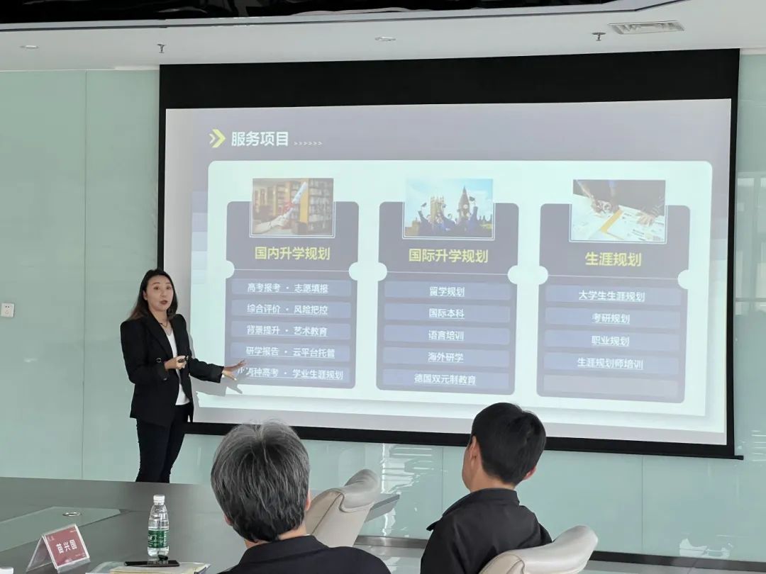 随后,金盖德教育山东省公司总经理于颖女士对集团的核心业务进行了深入解读。她指出,金盖德教育依托强大的专家团队与大数据支持,提供个性化、精准化的高考志愿填报咨询服务,帮助学生依据自身兴趣、能力与职业倾向,合理选择院校与专业。同时,金盖德教育还构建了完善的学业生涯规划体系,涵盖兴趣探索、能力提升、职业规划等多个环节,旨在引导学生全面认识自我,明确发展目标,实现从高中到大学乃至职场的无缝衔接。